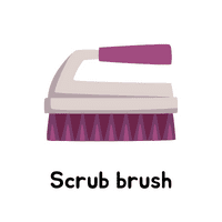 - Scrub brush: A scrub brush is a handheld brush with stiff bristles, used for scrubbing and cleaning tough stains or dirt.
