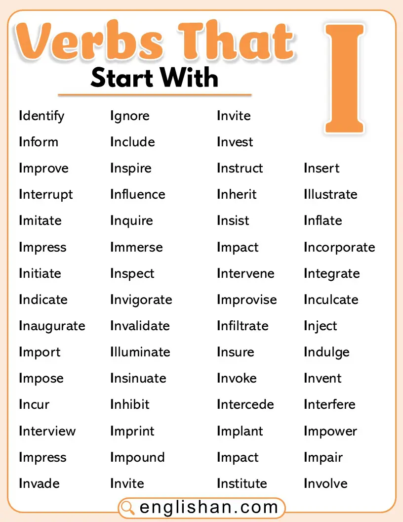 Learning verbs that start with I can help you express ideas more clearly, add variety to your sentences, and make your writing sound more natural and confident. Whether you’re a student, a writer, or someone who simply wants to speak better English, expanding your verb vocabulary is always a smart move.